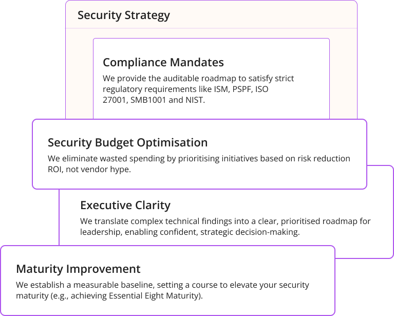 Framework Alignment: Strategic selection and mapping of controls from required frameworks (ISM, ISO 27001, PSPF, NIST, CIS) to establish your governance baseline.