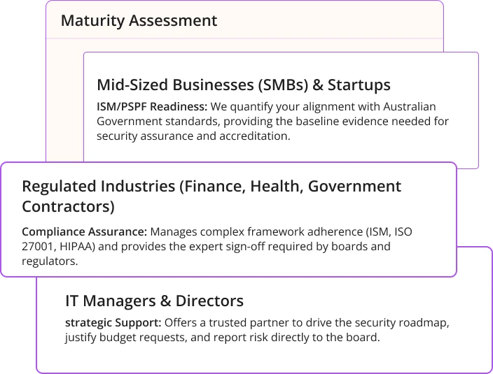 Manage adherence to all required frameworks (ISM, PSPF, NIST, ISO 27001).